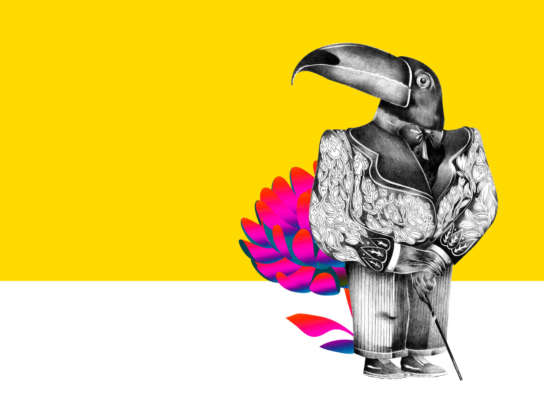 Being one of the very few animals who are known to consume chocolate, we thought a toucan would be the perfect character to represent our brand. With a name combining who he is (a toucan) with what he loves (cocoa), Tuco the Toucan represents the freedom of getting lost in one’s imagination. He will be the one guiding people through the world of Kawak, ensuring a rich sensory experience that carries a nostalgic childlike joy within a refined and classy environment.